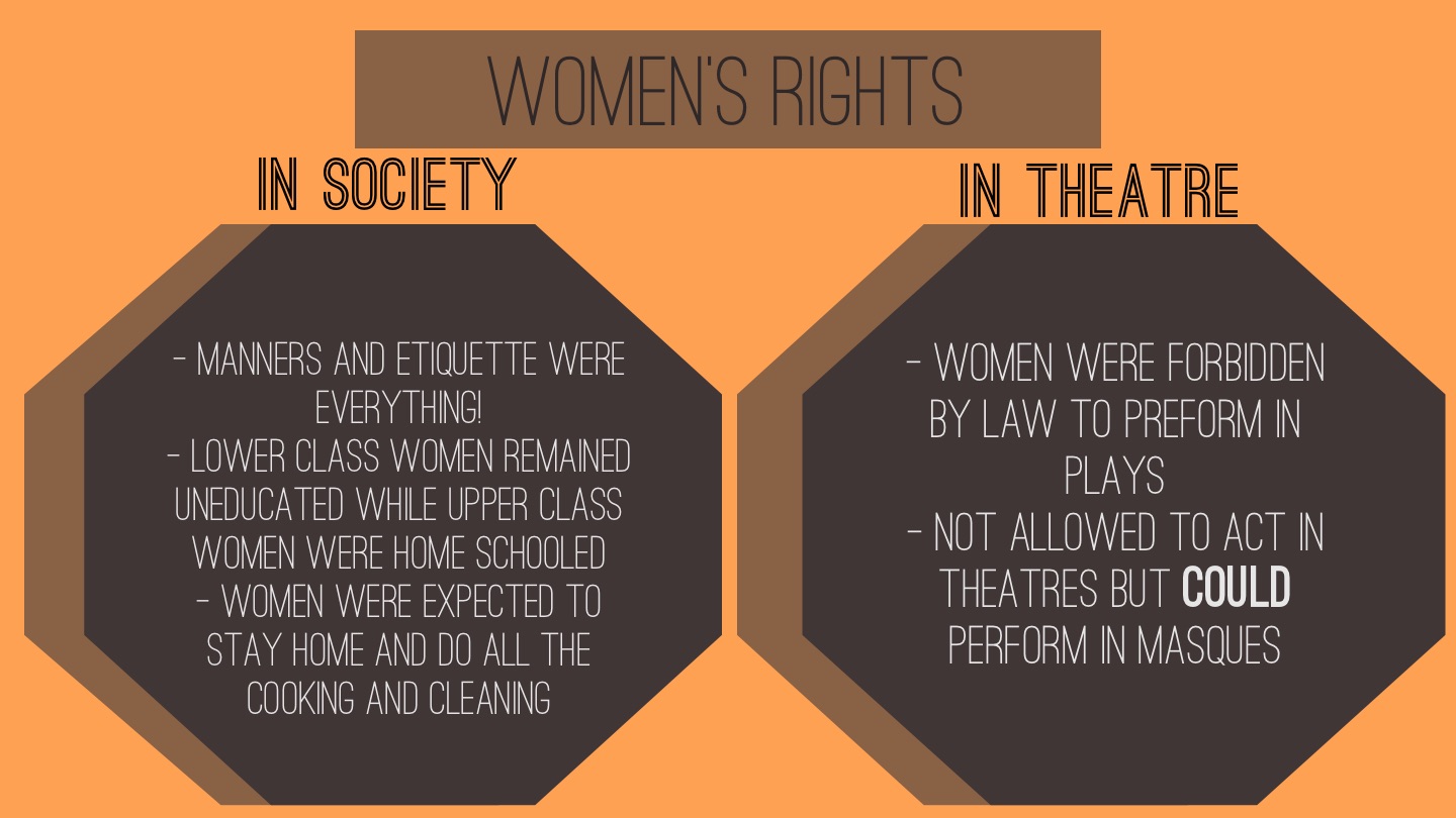 - Women were forbidden by law to preform in plays