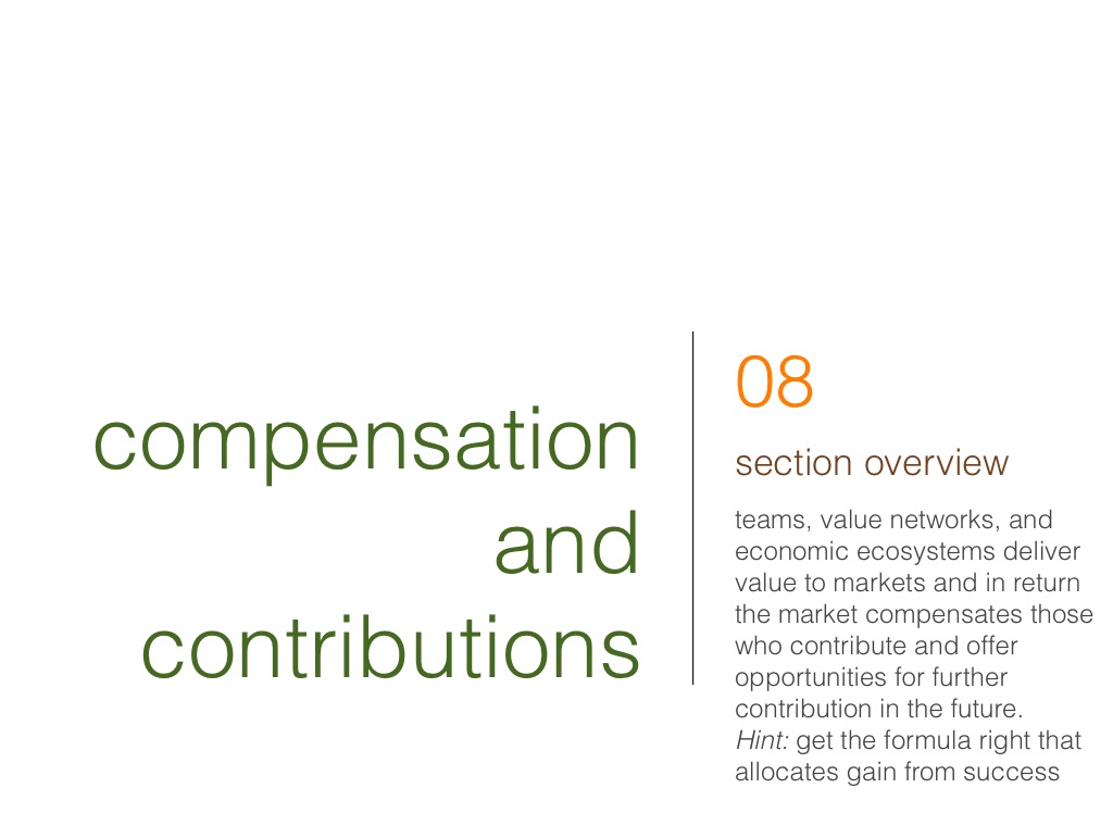 teams, value networks, and economic ecosystems deliver value to markets and in return the market compensates those who contribute and offer opportunities for further contribution in the future.