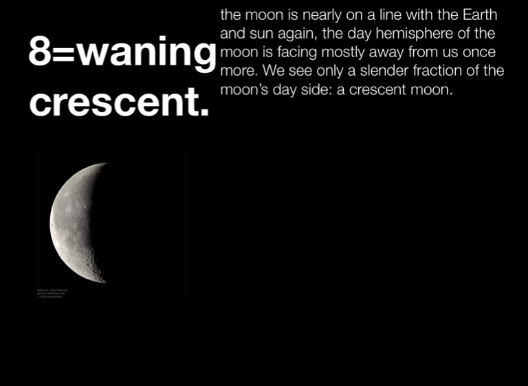 the moon is nearly on a line with the Earth and sun again, the day hemisphere of the moon is facing mostly away from us once more. We see only a slender fraction of the moon’s day side: a crescent moon.