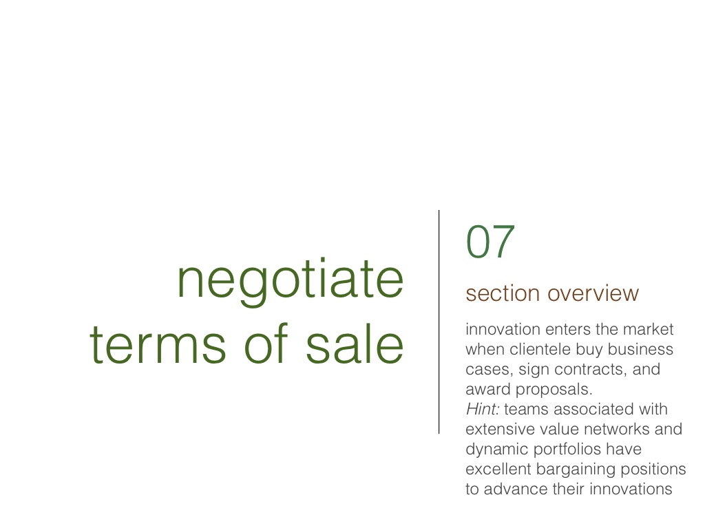 Hint: teams associated with extensive value networks and dynamic portfolios have excellent bargaining positions to advance their innovations