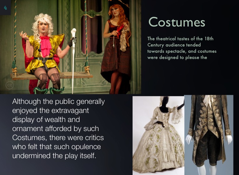 The theatrical tastes of the 18th Century audience tended towards spectacle, and costumes were designed to please the masses.