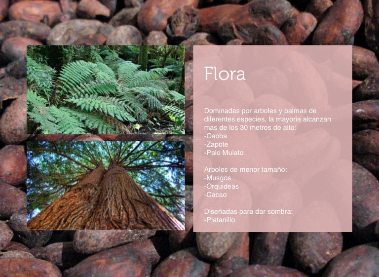 Dominadas por arboles y palmas de diferentes especies, la mayoria alcanzan mas de los 30 metros de alto: