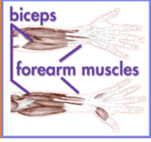 Forearm- the muscles between the wrist and elbow