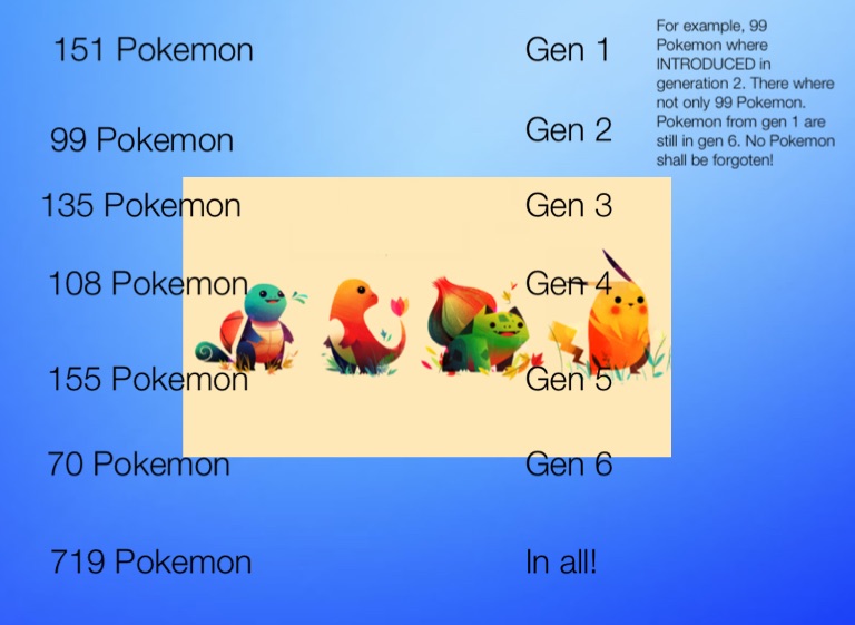 For example, 99 Pokemon where INTRODUCED in generation 2. There where not only 99 Pokemon. Pokemon from gen 1 are still in gen 6. No Pokemon shall be forgoten!