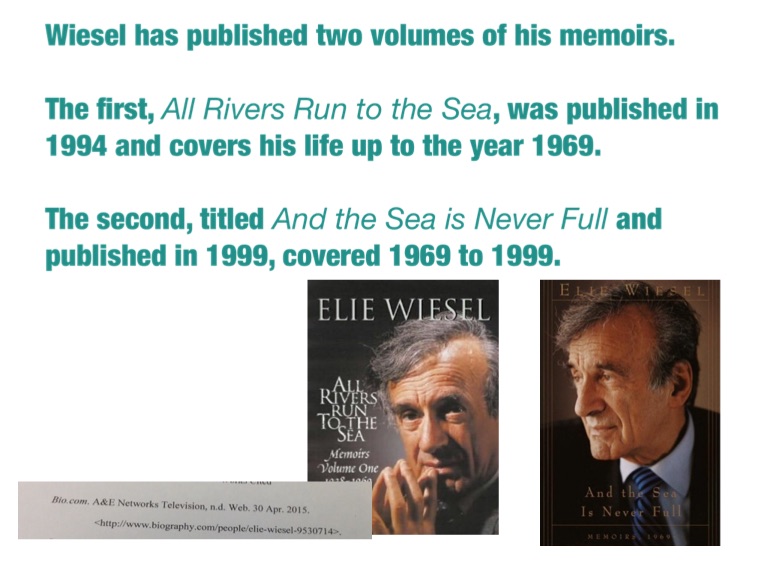 Wiesel has published two volumes of his memoirs.