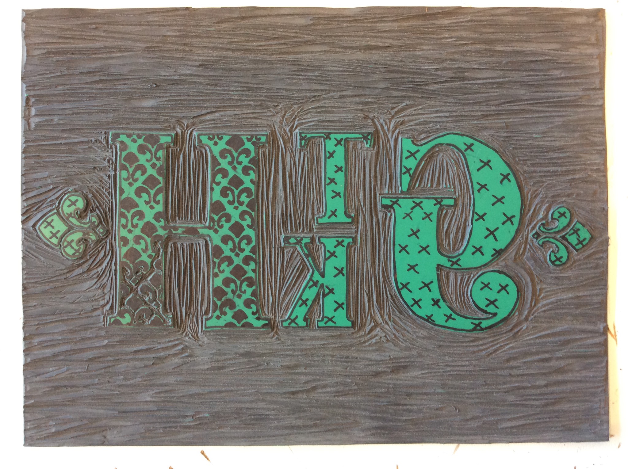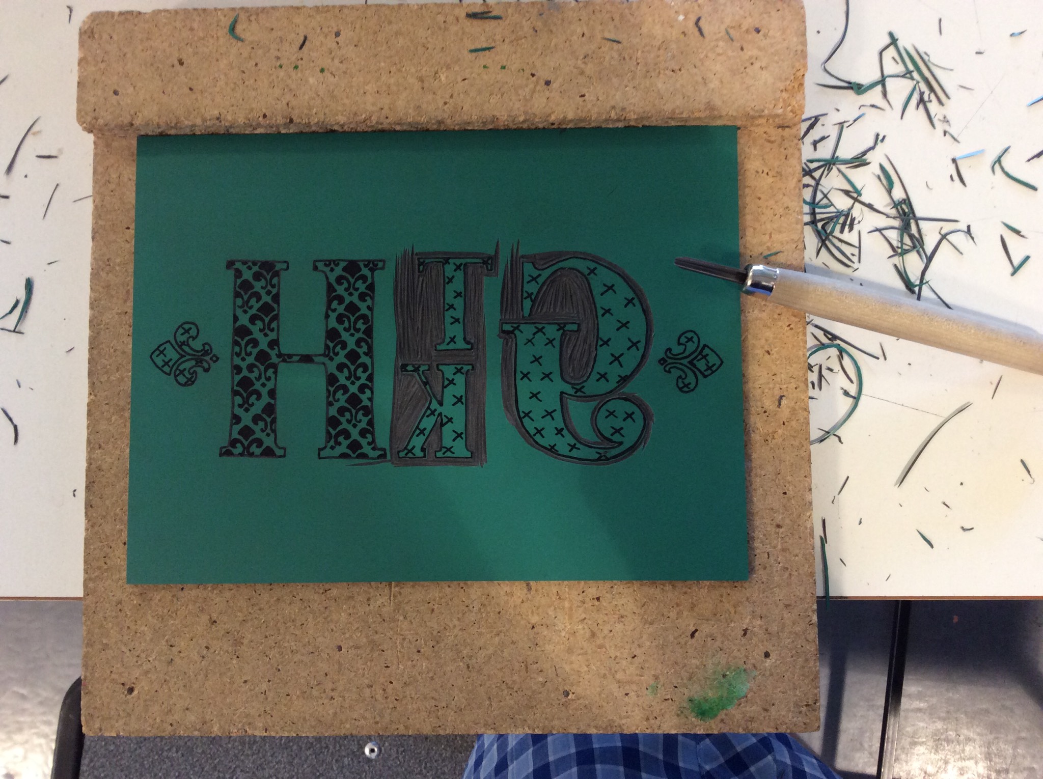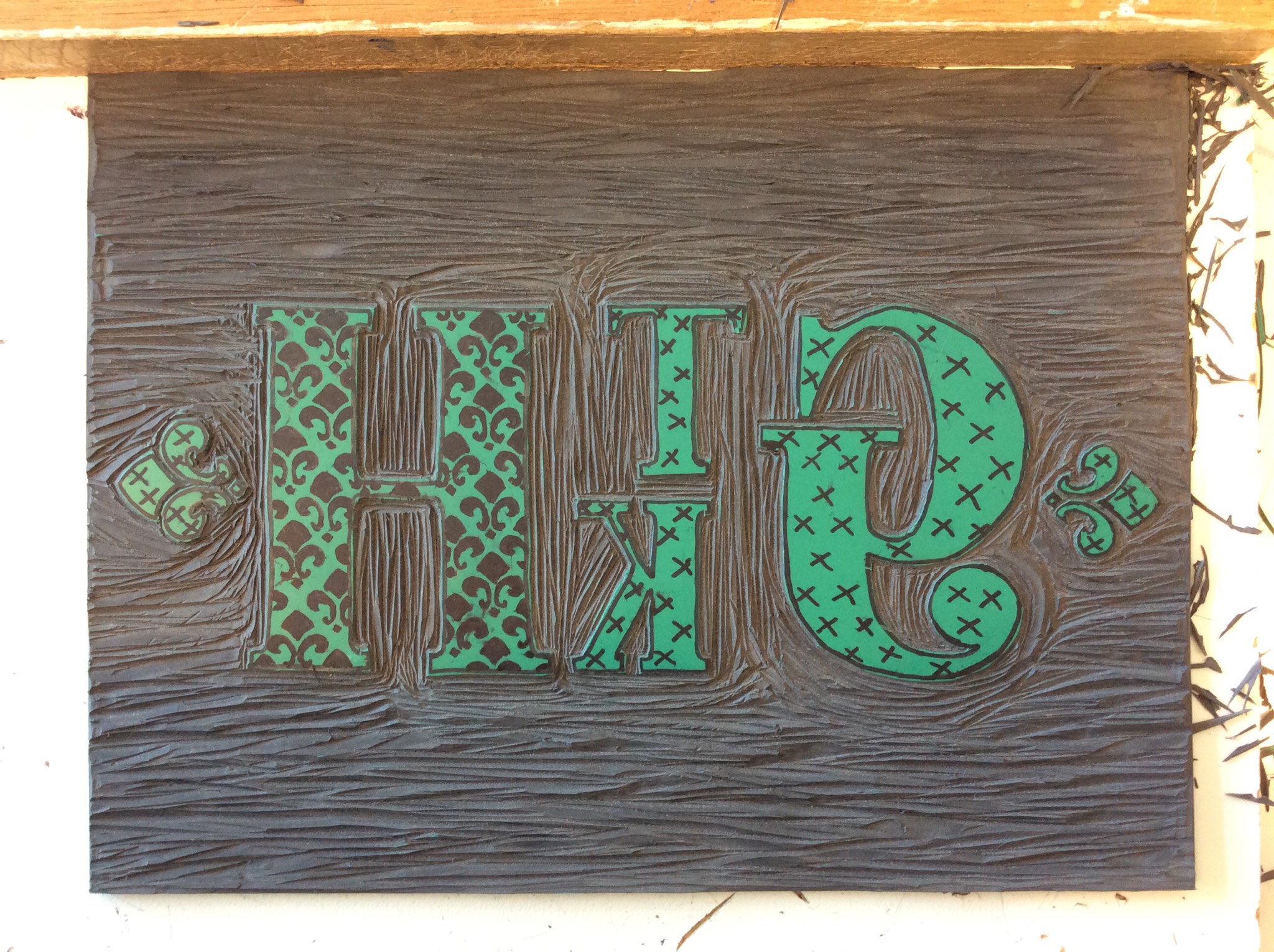 I cut around my letters first, then cut away the space on the outside. The inside of the 'H' took a long time, and I did that last.