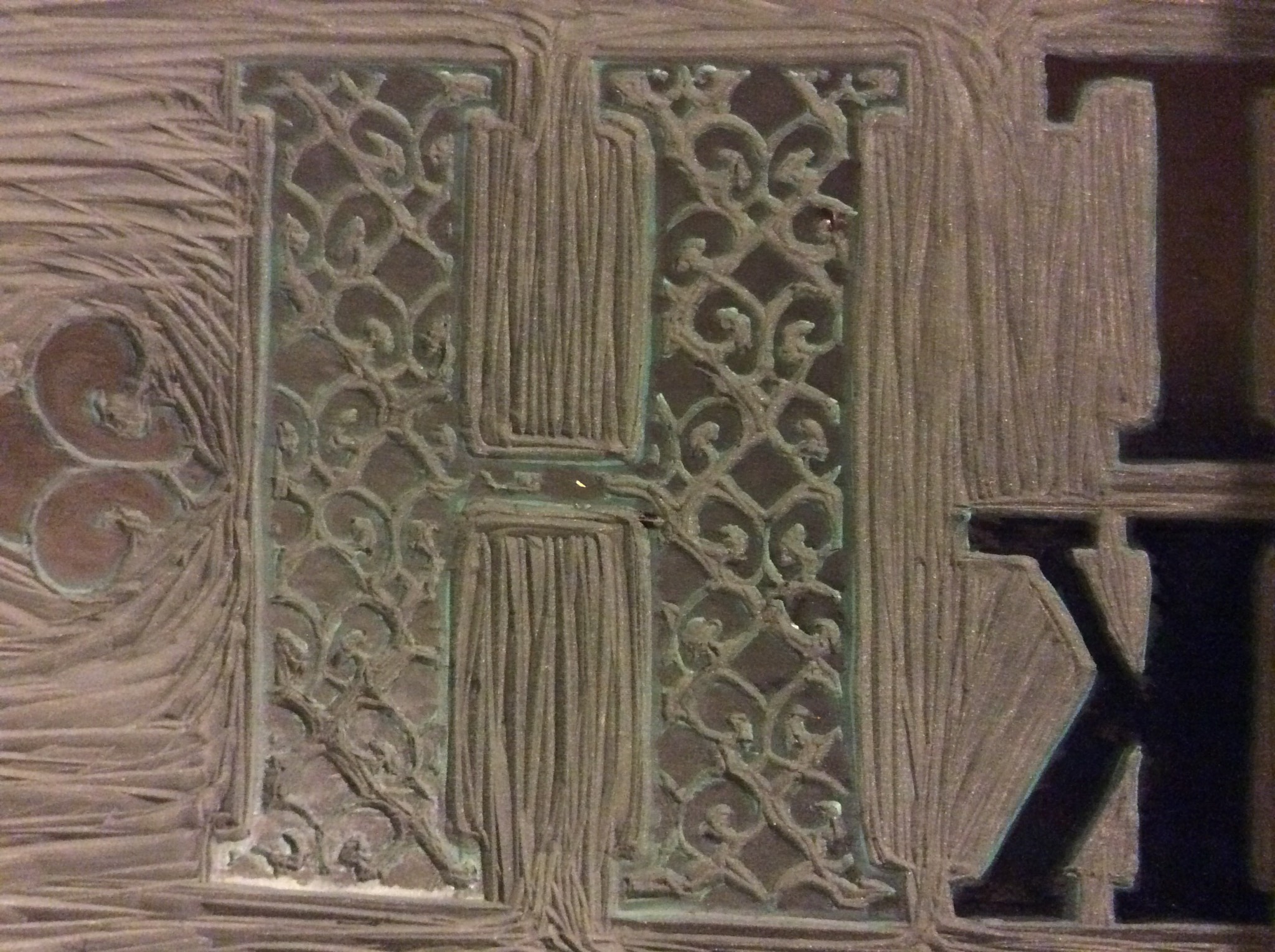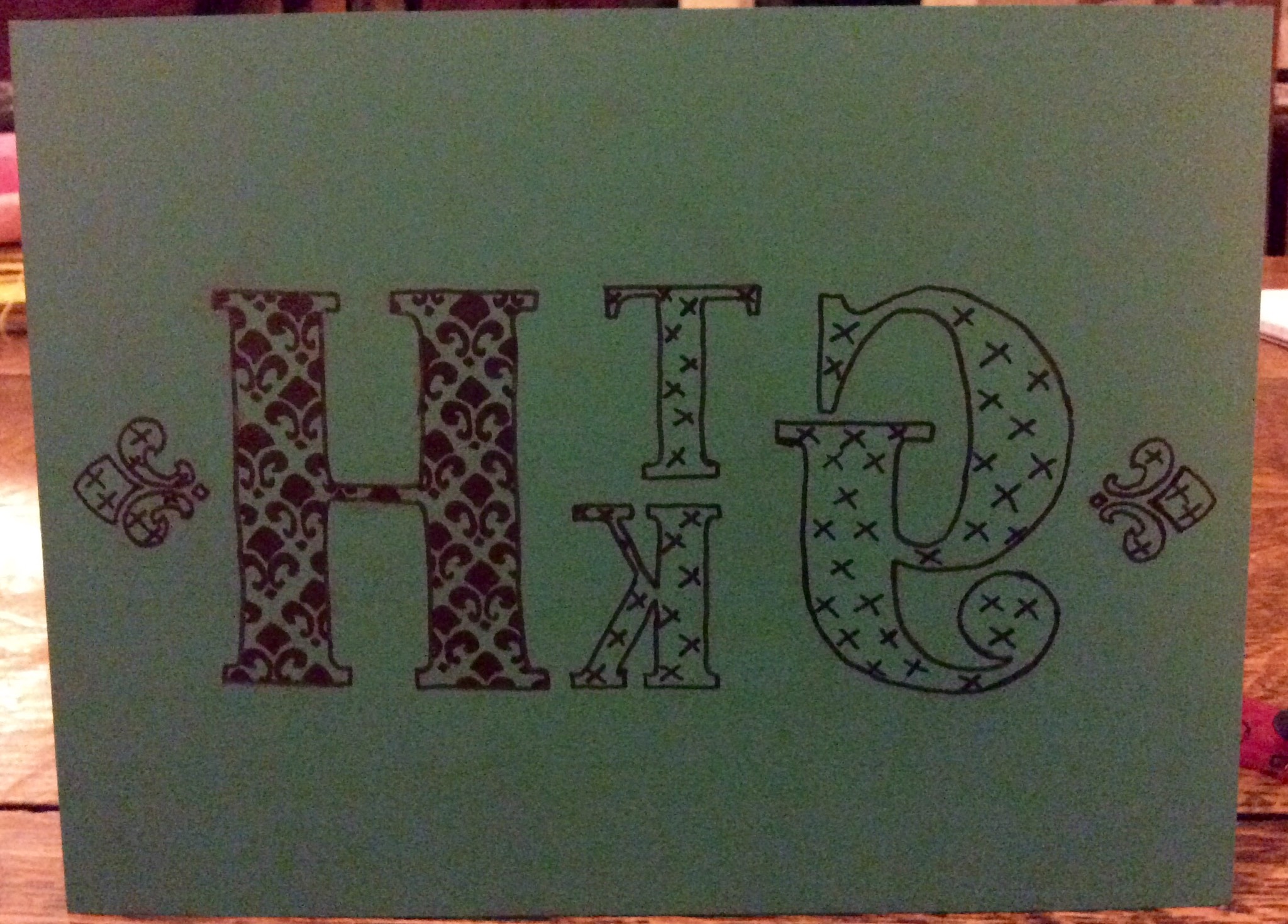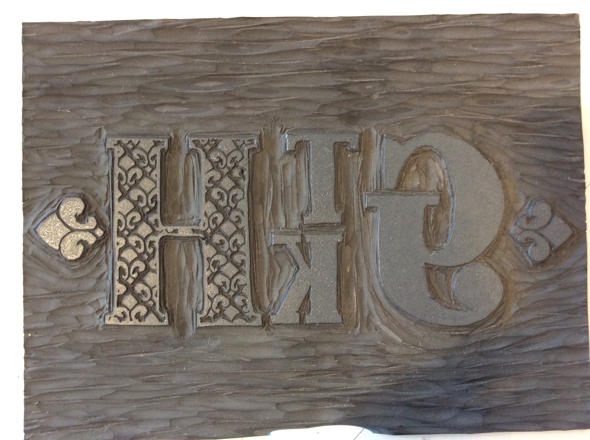 I cut around my letters first, then cut away the space on the outside. The inside of the 'H' took a long time, and I did that last.