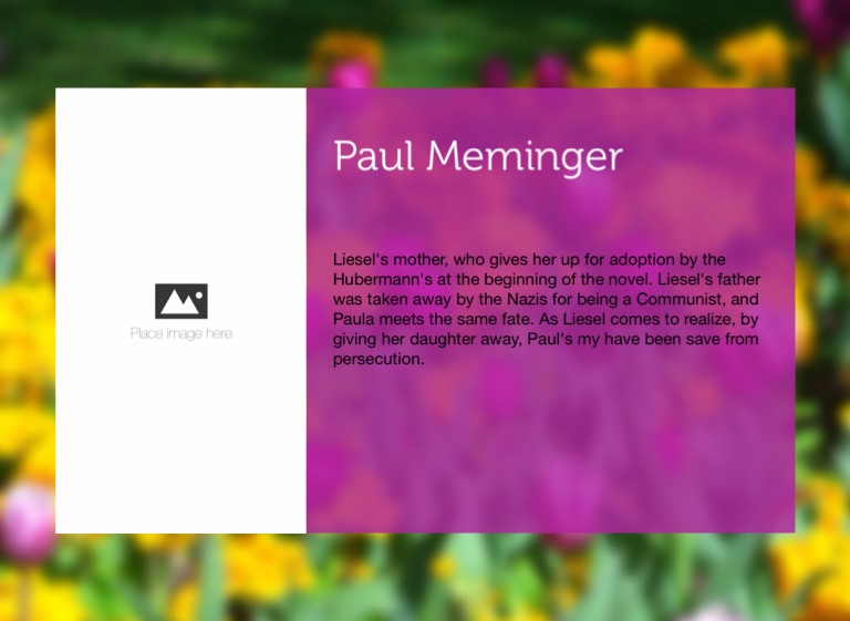 Liesel's mother, who gives her up for adoption by the Hubermann's at the beginning of the novel. Liesel's father was taken away by the Nazis for being a Communist, and Paula meets the same fate. As Liesel comes to realize, by giving her daughter away, Paul's my have been save from persecution.
