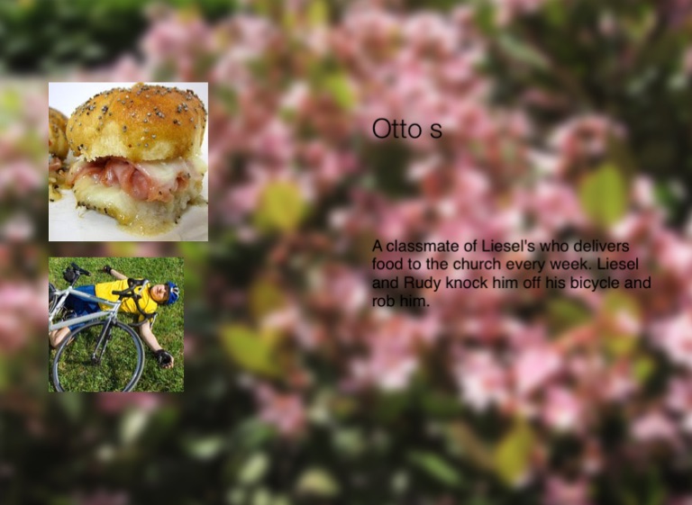 A classmate of Liesel's who delivers food to the church every week. Liesel and Rudy knock him off his bicycle and rob him.