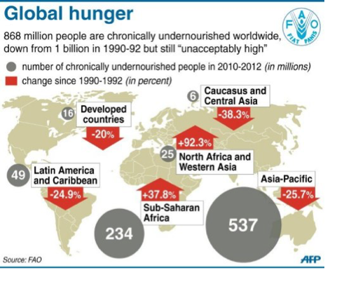 Globally, about 842 million people are estimated to be undernourished.
