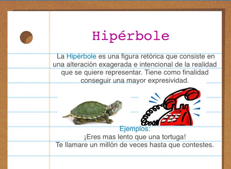 La Hipérbole es una figura retórica que consiste en una alteración exagerada e intencional de la realidad que se quiere representar. Tiene como finalidad conseguir una mayor expresividad.