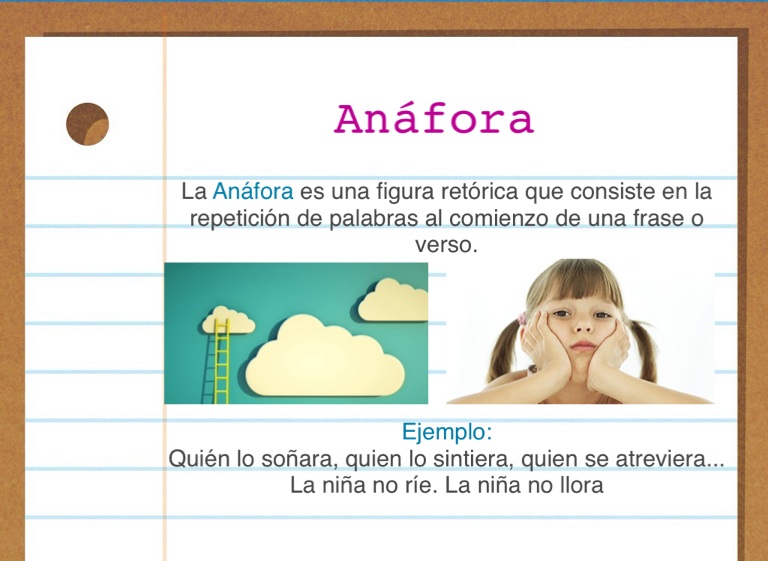 La Anáfora es una figura retórica que consiste en la repetición de palabras al comienzo de una frase o verso.
