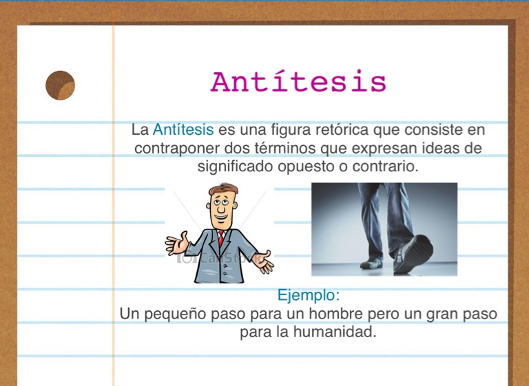 La Antítesis es una figura retórica que consiste en contraponer dos términos que expresan ideas de significado opuesto o contrario.