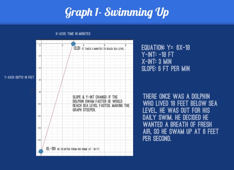 Slope & Y-int change: if the dolphin swam faster he would reach sea level faster, making the graph steeper.