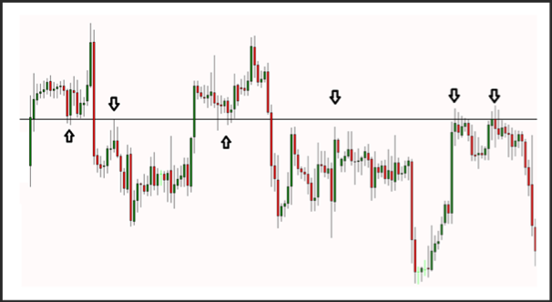 في الصوره تحول الدعم الي مقاومه والمقاومه الي دعم وذلك يوضح لنا قاعده : ان الدعم السابق يتحول الي مقاومه والمقاومه السابقه تتحول الي دعم