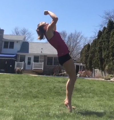 The linear motion principle involving reaction is applied in this phase of the backtuck. The applied force generated by the body is directed downward into the ground. This means movement occurs opposite to that which is upward. This principle explains why the body travels upward when it is pushing downward.