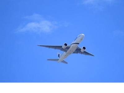 A plane flys by but he can't signal it fast enough.
