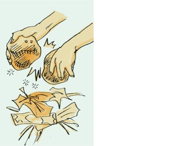 A porky pine cut his legs. Brian is trying to make a fire and it is not working.