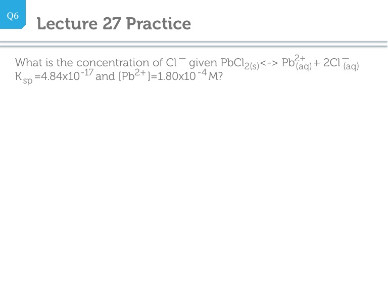 What is the concentration of Cl given PbCl <-> Pb + 2Cl