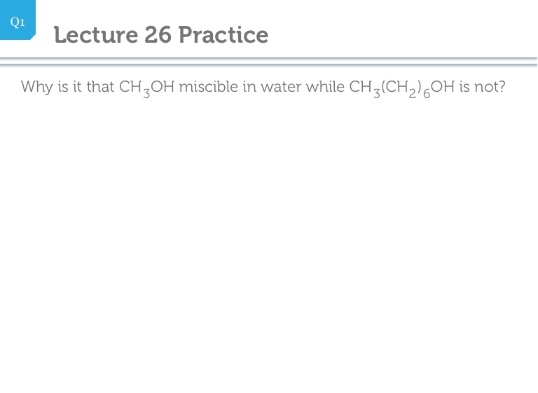 Why is it that CH OH miscible in water while CH (CH ) OH is not?