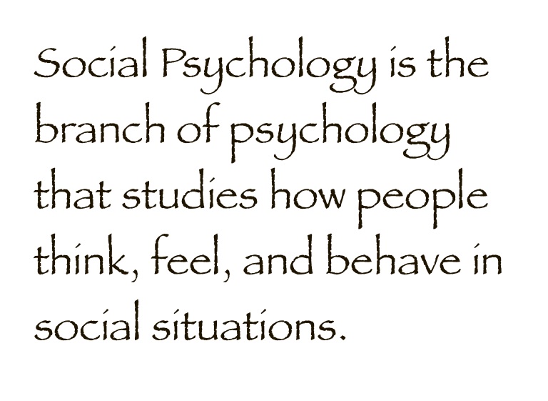 Social Psychology is the branch of psychology that studies how people think, feel, and behave in social situations.