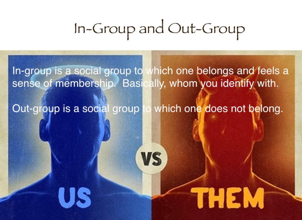 In-group is a social group to which one belongs and feels a sense of membership. Basically, whom you identify with.