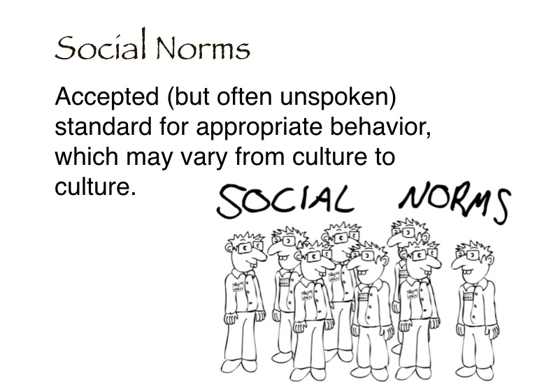 Accepted (but often unspoken) standard for appropriate behavior, which may vary from culture to culture.