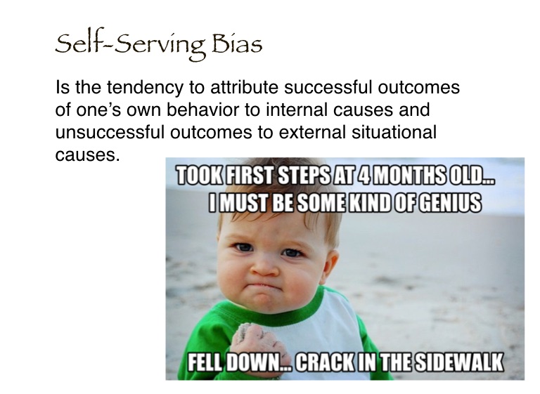 Is the tendency to attribute successful outcomes of one’s own behavior to internal causes and unsuccessful outcomes to external situational causes.