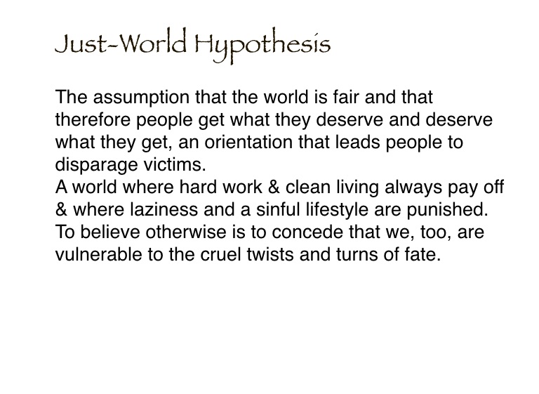 The assumption that the world is fair and that therefore people get what they deserve and deserve what they get, an orientation that leads people to disparage victims.