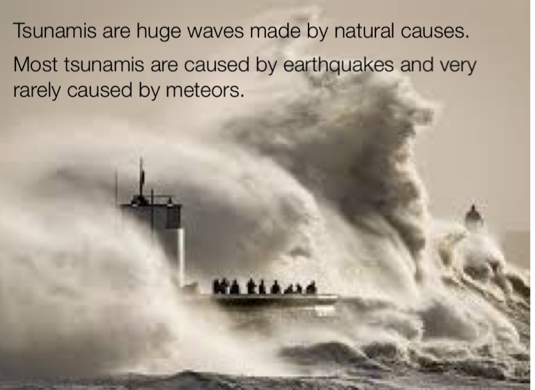 Most tsunamis are caused by earthquakes and very rarely caused by meteors.