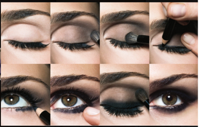 Prepare the lid,apply highlight color from brow bone to contour and lash line to contour,blend contour color into the crease and soften edges apply eye liner along the upper lash line,set eye liner with define color, apply eye liner along lower lash line, define brows, apply mascara to top and bottom lashes