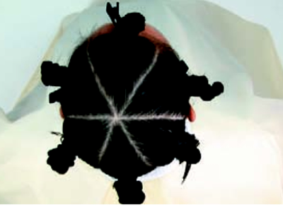 Detoxify hair divide into 6 wedge shaped sections that originate at the crown create part from ear to ear in back create a wedge shaped section in the center the narrow tip is the crown 2 sections automatically form on the left and the right repeat the process in the front to complete the 6 sections use a large diameter rod, take blockings 1 inch to 1 1/2 To 2 sizes larger then the diameter of the rod , comb the blockings at a 45 degree elevation and apply end papers wrap in this order back center wedge then right then right and then left go to top of the head start front center wedge at the the point of the wedge proceed to front of the hair line the right and left apply paper picks lengths wise between rods apply protective cream, solution, rinse, neutralize, rinse, condition, rinse
