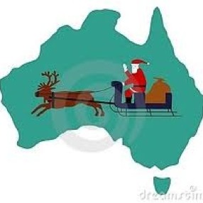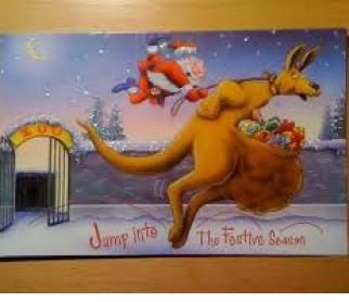 For Australia, Santa Clause gives his reindeers a rest and replaces them with kangaroos. He also changes his cloths with less 'hot' ones.