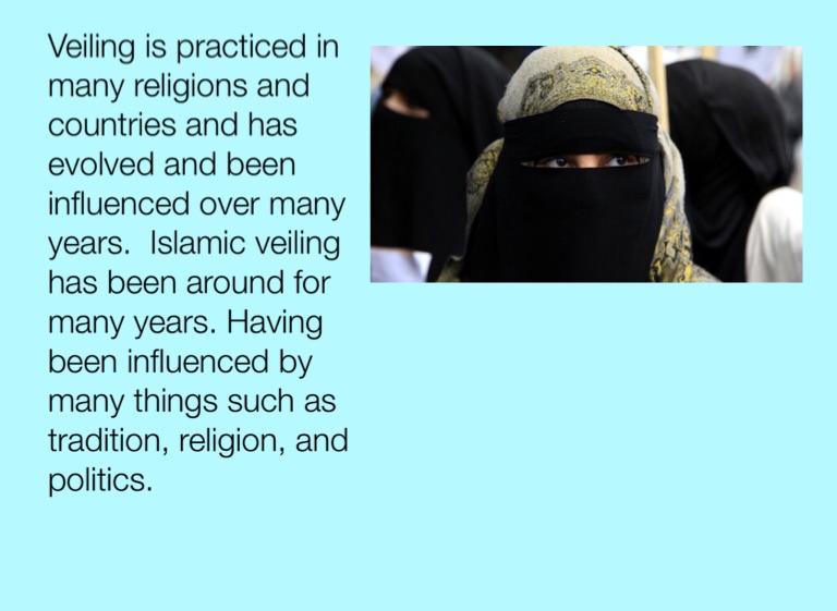 Veiling is practiced in many religions and countries and has evolved and been influenced over many years. Islamic veiling has been around for many years. Having been influenced by many things such as tradition, religion, and politics.