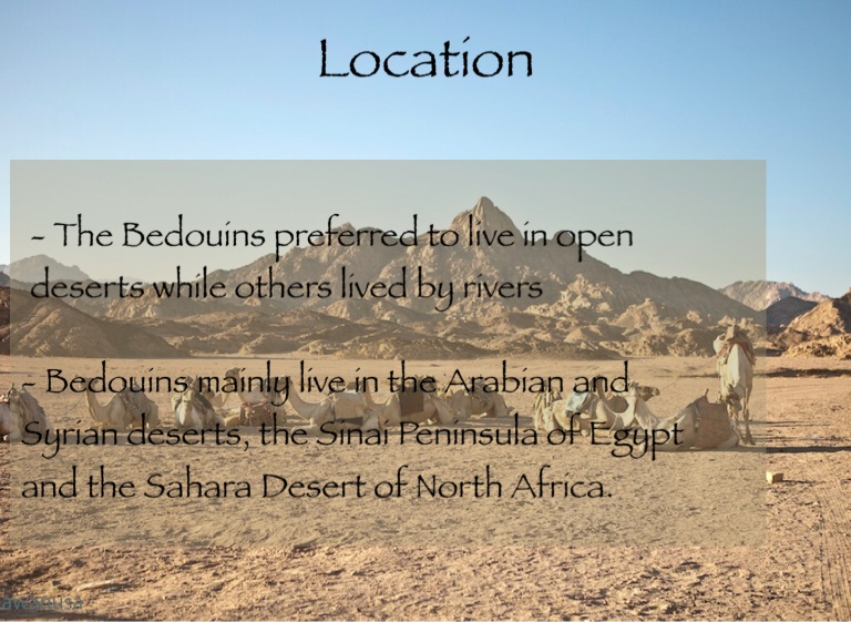 - The Bedouins preferred to live in open deserts while others lived by rivers