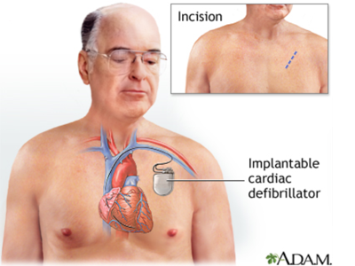 In case of an emergency you may need to perform CPR or electric shock. If you catch it early, a treatment that is often used for chronic ventricular tachycardias consists of implanting a device called an implantable cardioverter defibrillator can be done. The ICD is implanted in the chest, like a pacemaker.