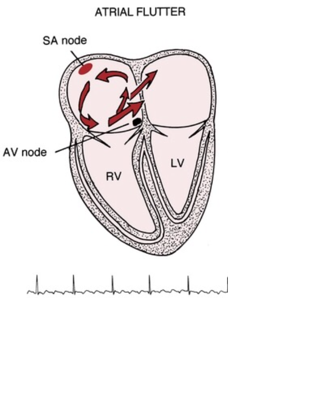 Atrial Flutter is a condition in which the heart's upper chambers beat too quickly. This could affect the beating of the heart and oxygen intake. Some medical conditions increase the risk for developing AFL. These medical conditions include heart failure, precious heart attack, valve abnormalities, high blood pressure, recent surgery, thyroid dysfunction, and chronic lung disease.