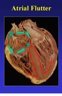 In some people, no underlying cause is ever found. Heart diseases or abnormalities that can cause atrial flutter include the following: Decreased blood flow to the heart (ischemia) due to coronary heart disease, atherosclerosis, or a blood clot. High blood pressure.