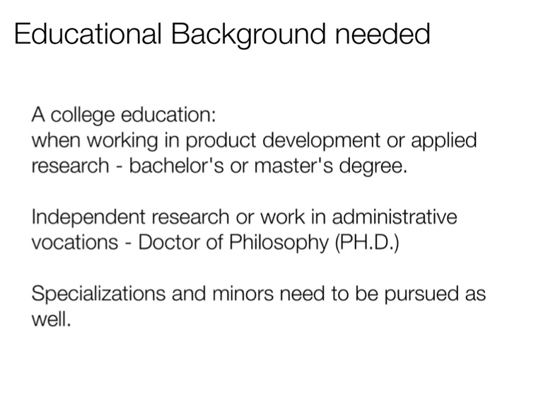 when working in product development or applied research - bachelor's or master's degree.