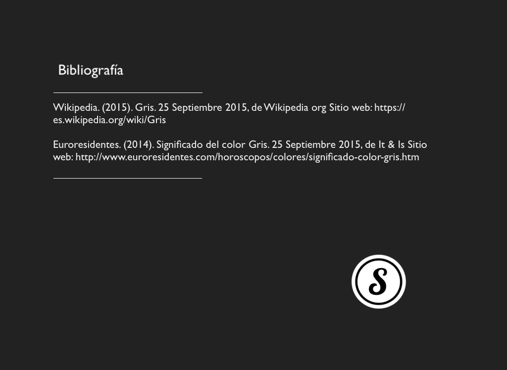 Euroresidentes. (2014). Significado del color Gris. 25 Septiembre 2015, de It & Is Sitio web: http://www.euroresidentes.com/horoscopos/colores/significado-color-gris.htm