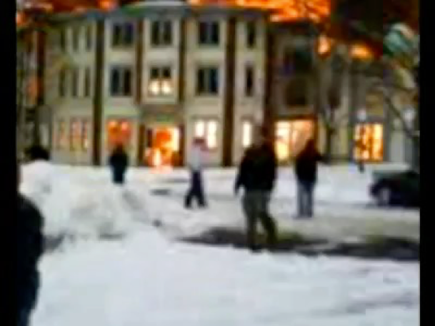 Fire gutted a building of shops near the front gate of Adventureland amusement park on February 20, 2010. No one was hurt in the blaze that brought firefighters from Altoona, Ankeny, Johnston and Pleasant Hill at about 4:30 p.m. At the height of the fire, black smoke could be spotted as far away as the Des Moines airport, witnesses said. The cause of the fire was believed to be a ceiling that collapsed in the toy store and sparked an electrical fire.