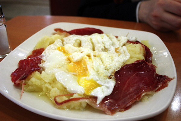 One traditional food from Spain is called Huevos Rotos and consists of Eggs, meat and potatoes. This is a highly enjoyed dish.