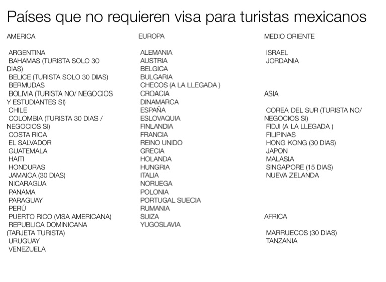 Países que no requieren visa para turistas mexicanos