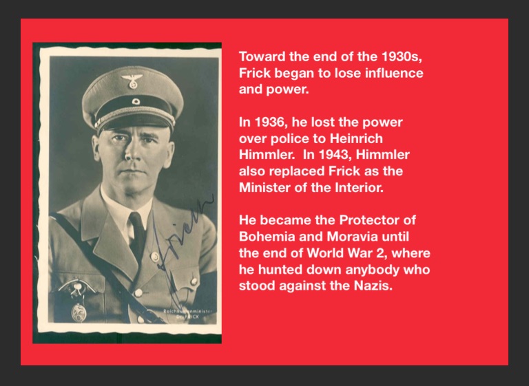 In 1936, he lost the power over police to Heinrich Himmler. In 1943, Himmler also replaced Frick as the Minister of the Interior.