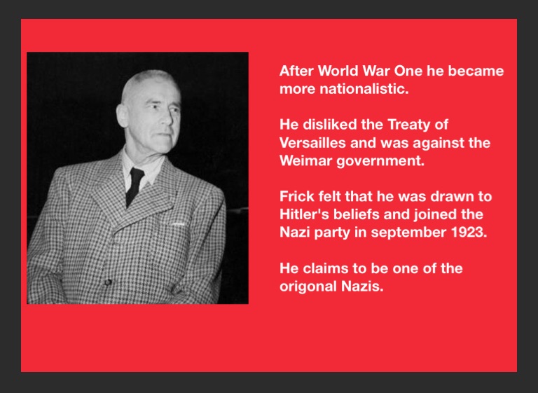 Frick felt that he was drawn to Hitler's beliefs and joined the Nazi party in september 1923.