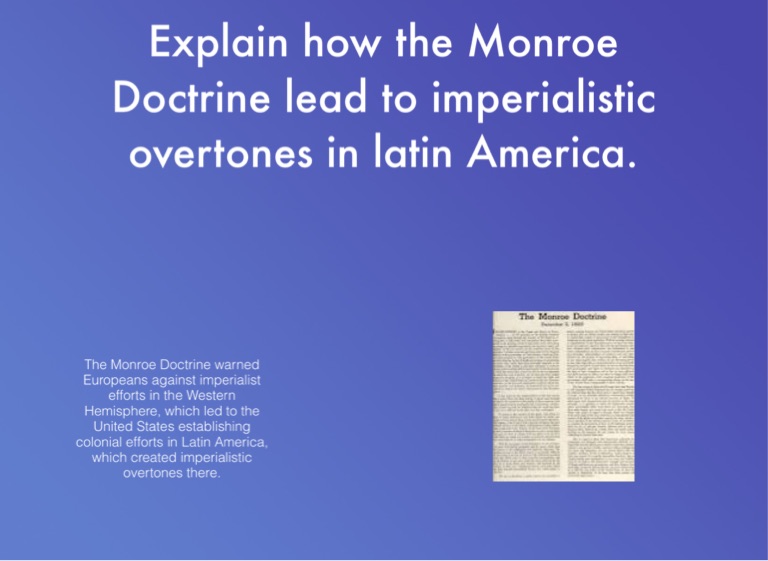 The Monroe Doctrine warned Europeans against imperialist efforts in the Western Hemisphere, which led to the United States establishing colonial efforts in Latin America, which created imperialistic overtones there.