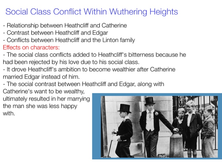 - The social contrast between Heathcliff and Edgar, along with Catherine's want to be wealthy,