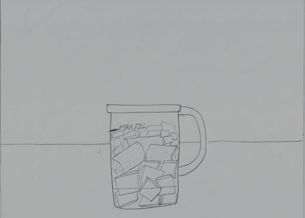 Close up of the cup on the kitchen counter filled with the ingredients.