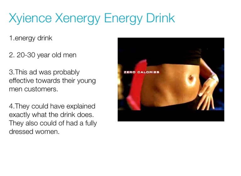 1.energy drink 2. 20-30 year old men 3.This ad was probably effective towards their young men customers. 4.They could have explained exactly what the drink does. They also could of had a fully dressed women.