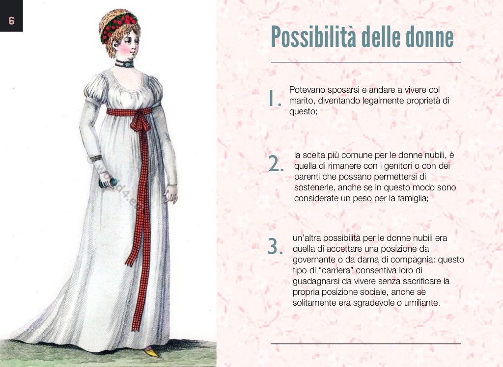 un’altra possibilità per le donne nubili era quella di accettare una posizione da governante o da dama di compagnia: questo tipo di “carriera” consentiva loro di guadagnarsi da vivere senza sacrificare la propria posizione sociale, anche se solitamente era sgradevole o umiliante.